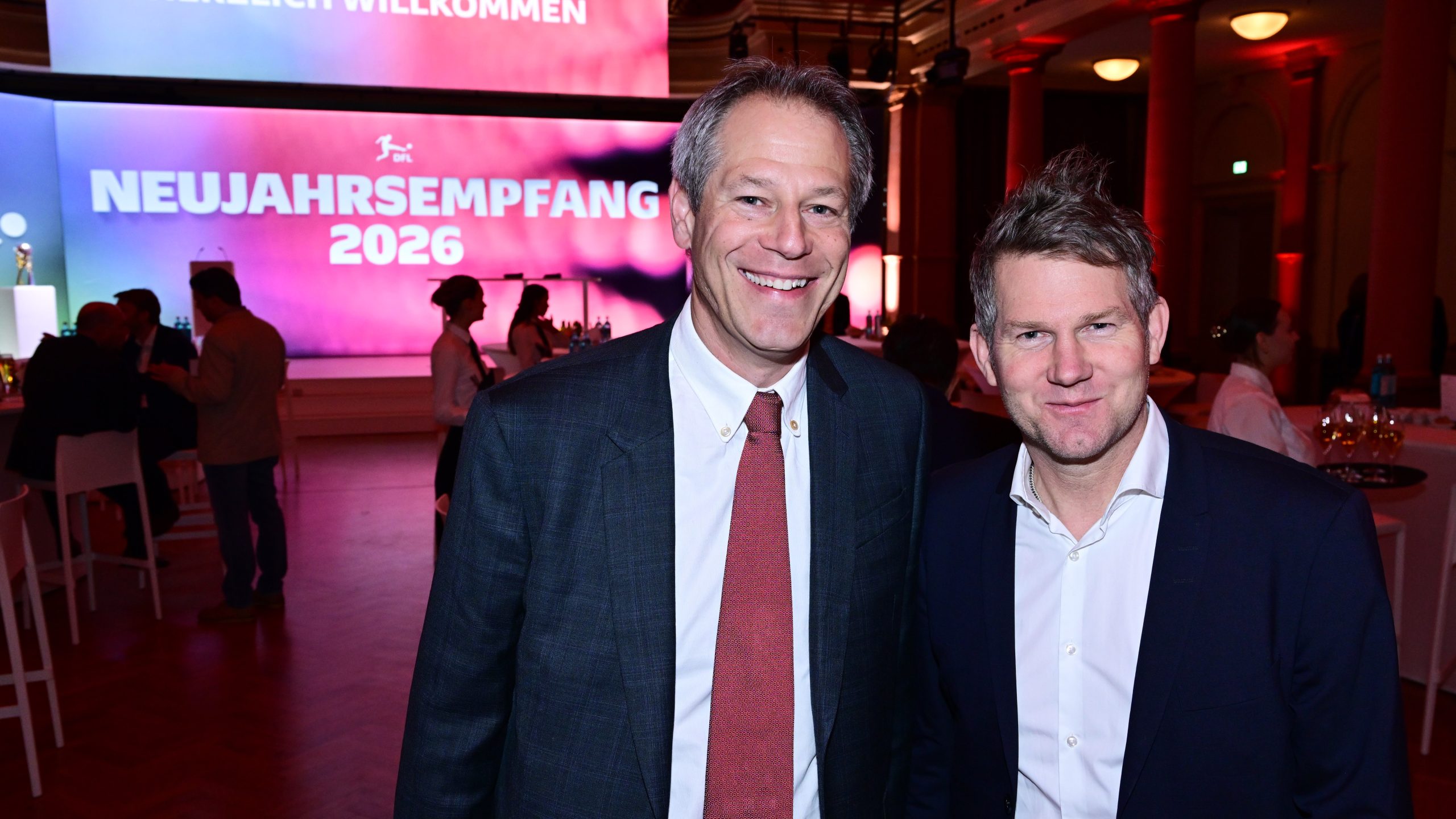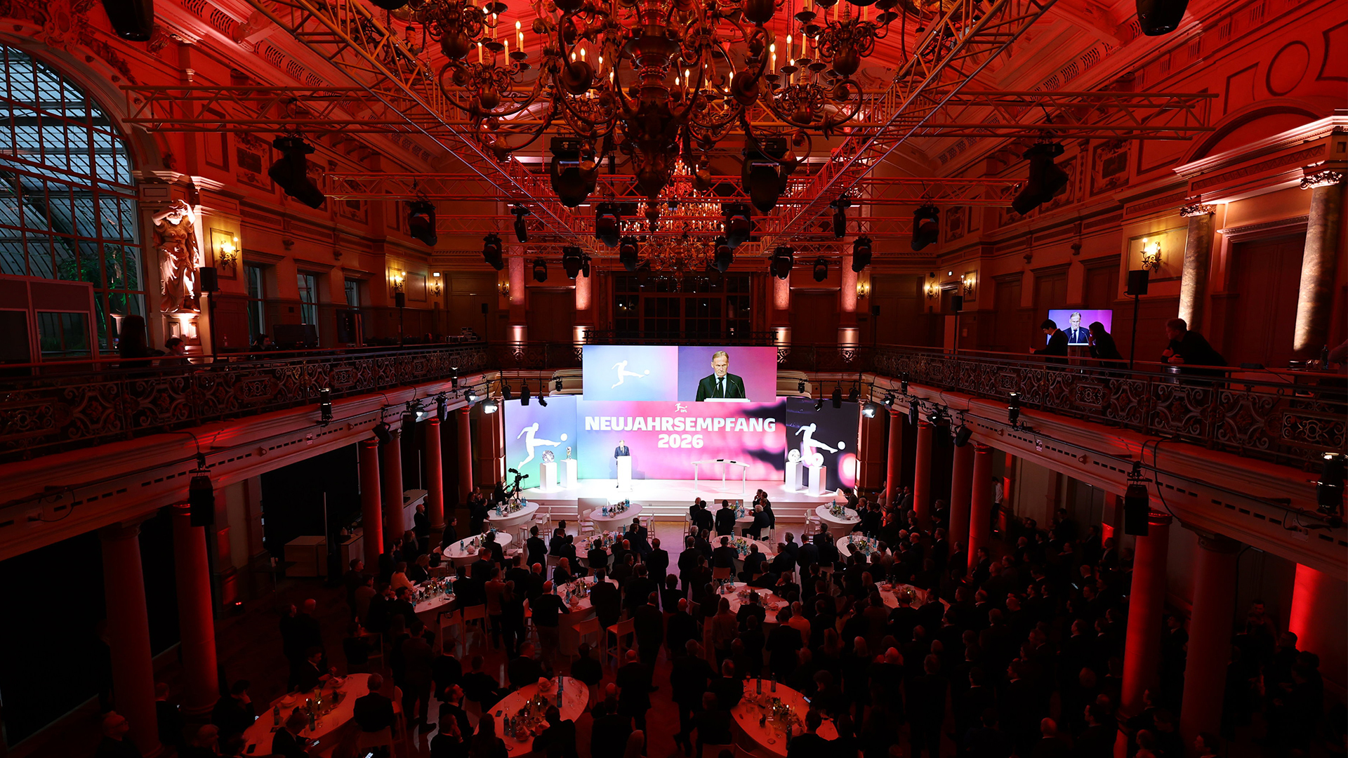 26.1.2026 – Trotz des Wintereinbruchs in Teilen Deutschlands waren rund 400 Gäste der Einladung gefolgt. Neben Vertreterinnen und Vertretern der Clubs der Bundesliga und 2. Bundesliga kamen Gäste aus Sport, Medien, Politik und Gesellschaft im Frankfurter Palmengarten zum traditionellen Neujahrsempfang der DFL zusammen. Im Zentrum des Programms stand das 25. Jubiläum des Ligaverbands – im Dezember 2000 hatten sich die Clubs der Bundesliga und der 2. Bundesliga unter dem damaligen Namen „Die Liga – Fußballverband e.V.“ eigenständig gemacht und damit eine bis heute andauernde Erfolgsgeschichte begründet. In einem kurzen Film wurden die Gäste an zahlreiche Höhepunkte in der bewegten Geschichte des Ligaverbands erinnert, ebenso wie an gemeinsam überwundene Krisen wie die Coronapandemie.