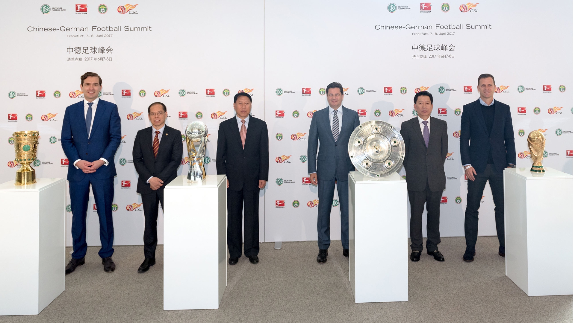 Zu den Teilnehmern beim „Chinese-German Football Summit“ zählten DFL-Geschäftsführer Christian Seifert, DFB-Generalsekretär Dr. Friedrich Curtius, DFB-Schatzmeister Dr. Stephan Osnabrügge und Oliver Bierhoff, Manager der Nationalmannschaft, sowie als Vertreter der Botschaft der Volksrepublik China in Berlin Kulturattaché Chen Ping und Zhang Jian, Senior Vice President und Generalsekretär des Chinesischen Fußball-Verbandes (CFA).
